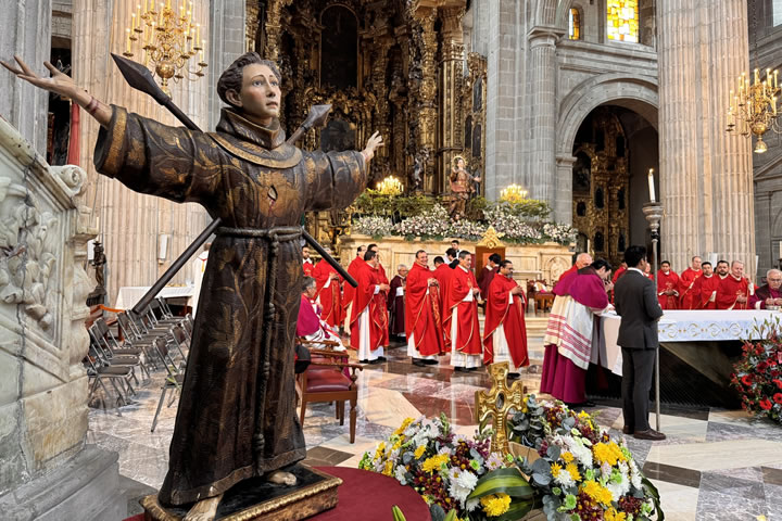 La Chiesa cattolica messicana lo venera come patrono della Città del Messico e del suo arcivescovado, nonché patrono della gioventù messicana. Nelle città di Colima e Villa de Álvarez è considerato protettore contro gli incendi e i terremoti. La sua festa liturgica si celebra ogni anno il 5 febbraio con una messa solenne e il rinnovo del giuramento. A Villa de Álvarez, da oltre 150 anni, si tengono feste charro-tauromachiche in suo onore.