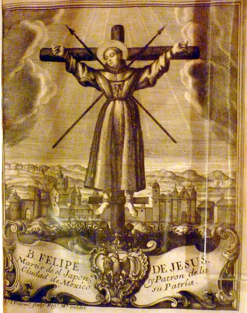 Grabado de San Felipe de Jesús, publicado en su hagiografía, Madrid, 1751. / Foto de Urbey1